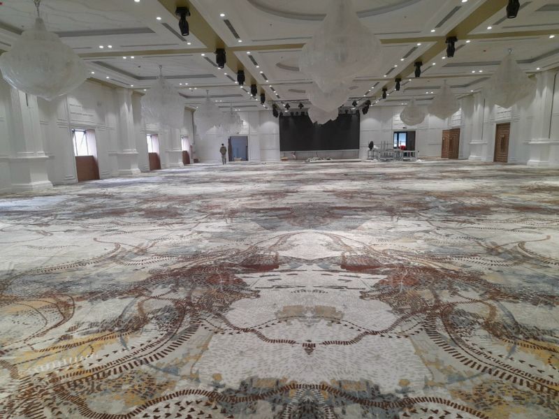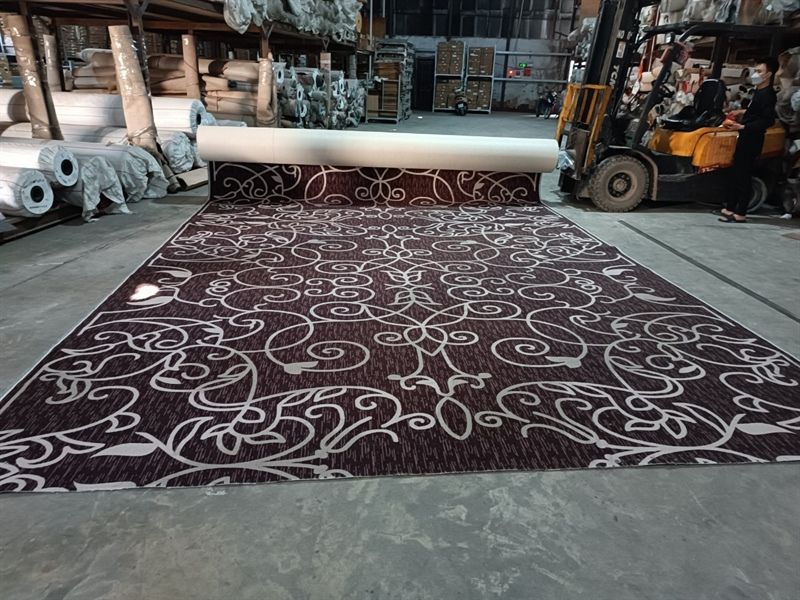Khách sạn – nhà hàng: Thảm hoa văn cao cấp, dày 7–10mm, màu ấm, họa tiết sang trọng.