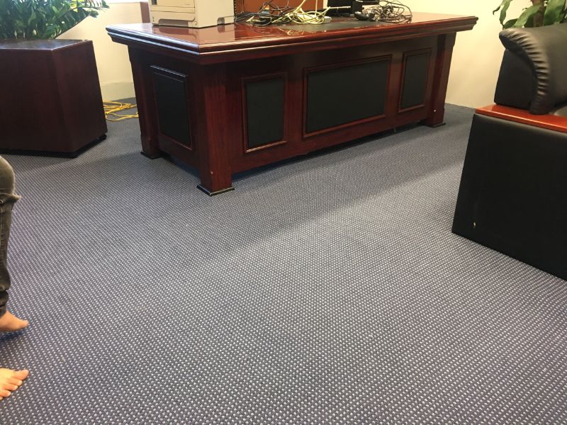 Văn phòng: Thảm trơn, màu tối, dày 5–6mm, dệt loop để chống xẹp lún.
