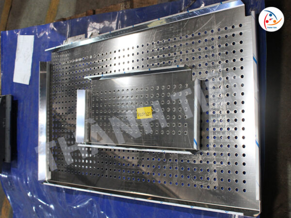 Tấm kim loại được đưa vào máy chấn để thực hiện các đường gấp theo bản vẽ. Máy chấn CNC sẽ kiểm soát lực và góc gấp chính xác, đảm bảo sản phẩm đạt yêu cầu kỹ thuật.